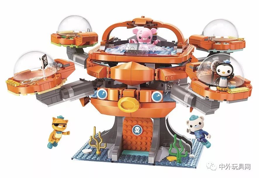 广东启梦文化传播有限公司出品。根据动画IP《海底小纵队》推出的一款产品。产品分为支撑底座、监测室、控制室三层结构,与原作章鱼堡保持一致的同时,控制室采用可开合的设计。将顶盖打开,通过联动杆件,监控室底板向上平移,露出下层结构,方便玩家放入人仔模拟各种场景。主体与台座之间采用圆形连接件,能360度转动。
