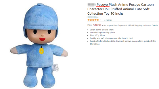 红极一时的蓝精灵也曾多次发案维权,The Smurfs是注册商标,标题和产品图片均不可出现。
