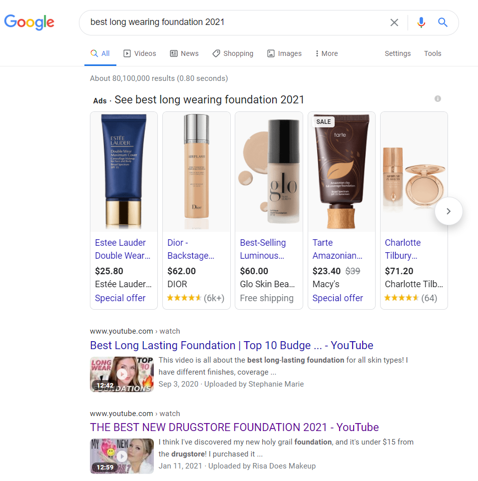 YouTube的机器人挖掘所有视频的自动生成的封闭字幕(也就是脚本)。回顾你的视频和纠正任何关键字是错误的识别。在视频的开头写上你的关键词,并将它们作为内容的一部分进行重复。确保你的视频标题在标题的开头有排名最高的关键词,比如 “Best drugstore long-wearing foundations reviewed + real wear test”,而不是 “I’m reviewing the latest foundations from the drugstore, to see which is the most long-wearing”.