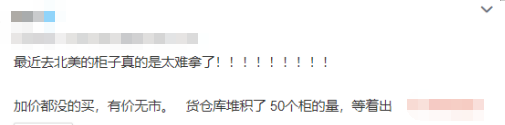一卖家感叹:最近去北美的柜子真的是太难拿了!加价都没的买,有价无市。货仓库堆积了50个柜子等着出 。