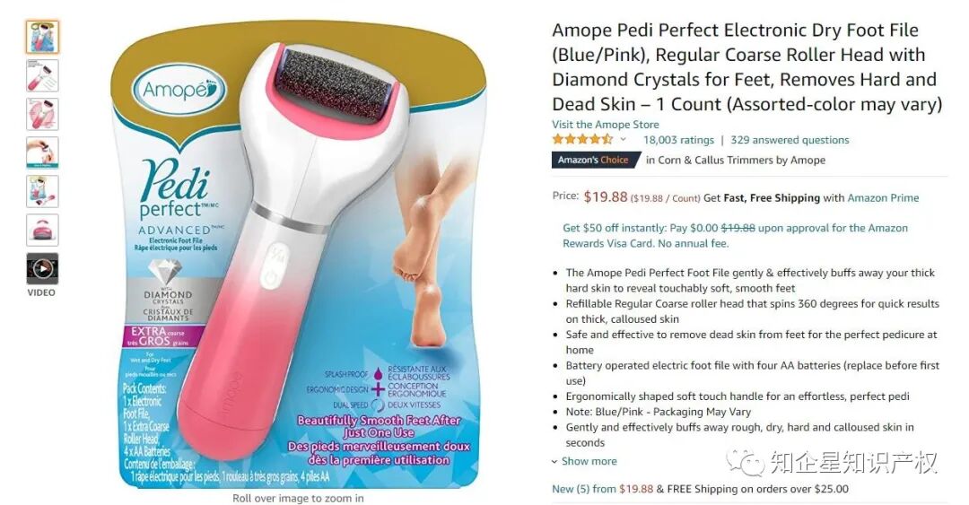 今天在浏览亚马逊的时候,看到一款电动磨脚器,他是美国站的Amazon'sChoice,售价19.88美金,留评18003颗星。