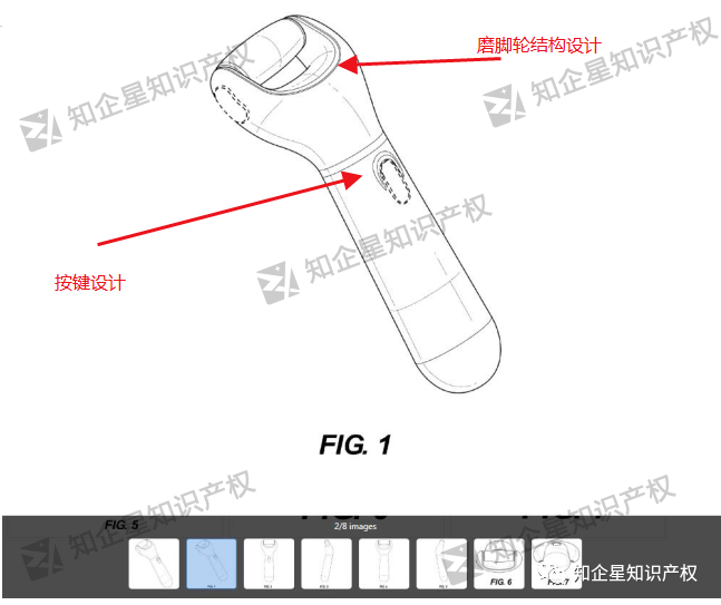 那这款产品是否有专利保护呢?我们针对产品做了定向查询,确实找到了它的美国外观专利,下图就是它的专利示意图。
