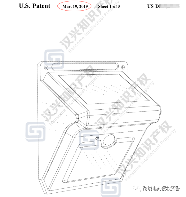 经欧美专利背景定向检索分析,我们发现该产品在美国跟欧盟都是有外观专利的(欧盟外观专利在2021年之前下证的在英国仍然有效),权利人为深圳一家公司。所以有在欧美站点销售相关产品的卖家,应注意规避。下面就是这壁挂式太阳能户外灯在美国欧盟的外观专利截图(欧盟外观专利可以线条图申请也可以直接产品图片申请):