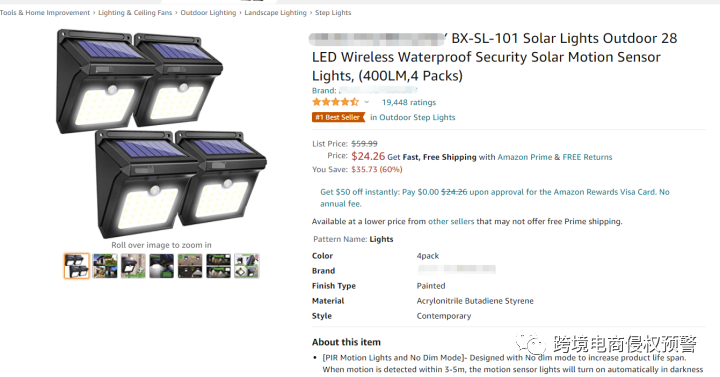 P.S.太阳能户外灯一直都是亚马逊的热品,有插地式的壁挂式的,其造型多变品类繁多。近期有多位卖家咨询过相关产品的专利情况,小编这段时间也做过很多相关外观专利的防侵权检索分析,所以相关卖家如果能有自己设计开模的产品最好是把先外观专利拿下来,不要等到自己备货热卖之后,被其他人抢注,自己想去申请却来不及了。