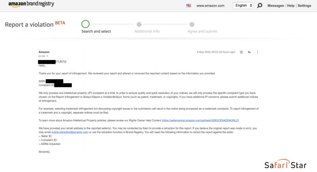 然后,亚马逊会向品牌所有者发送电子邮件,要求确认。