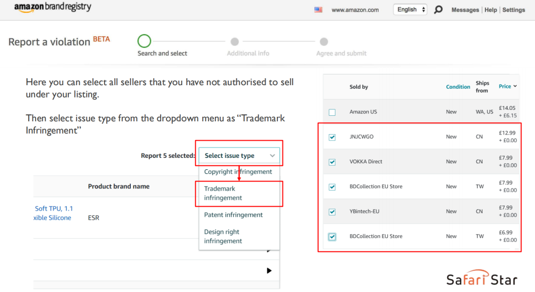 如果你已经在亚马逊注册了你的品牌,那么这个过程会更快更容易一点。对于已注册的品牌,亚马逊提供了可以用来报告品牌侵权的工具。