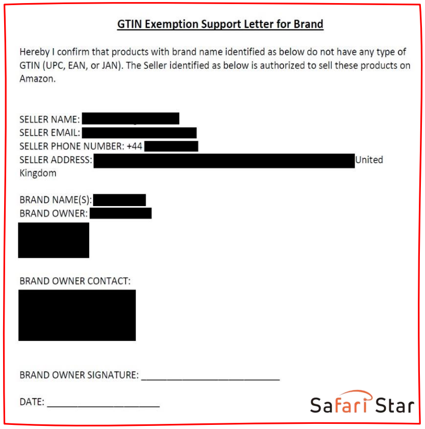品牌所有者需要填写一个模板,说明该品牌的产品不使用EAN或UPC号码,并希望请求豁免。