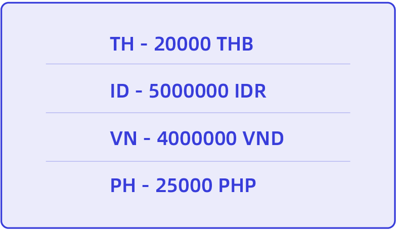 COD的订单对包裹金额有限制(如一个包裹订单有2件衣服,金额为2件衣服的价值),最高不得超过如下金额,如超过以下金额,也无法使用COD。