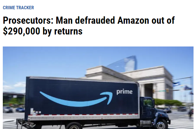 本周海外爆出了白嫖订单的另一个大案件,美国北卡州的一个消费者通过不退货退款,从亚马逊白嫖了接近 30 万美元的商品!