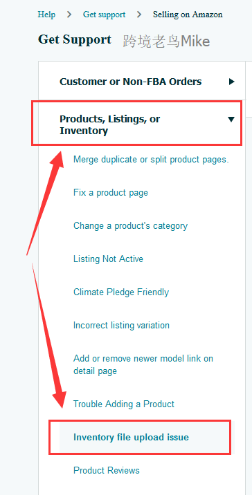 到卖家后台开Case(路径一般是inventory file upload issue)。