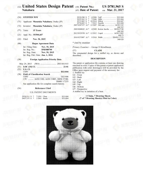 除上述已发案维权产品外,积特还检索到了不少毛绒玩具的美国外观专利,卖家想要进入市场要注意创新和规避。