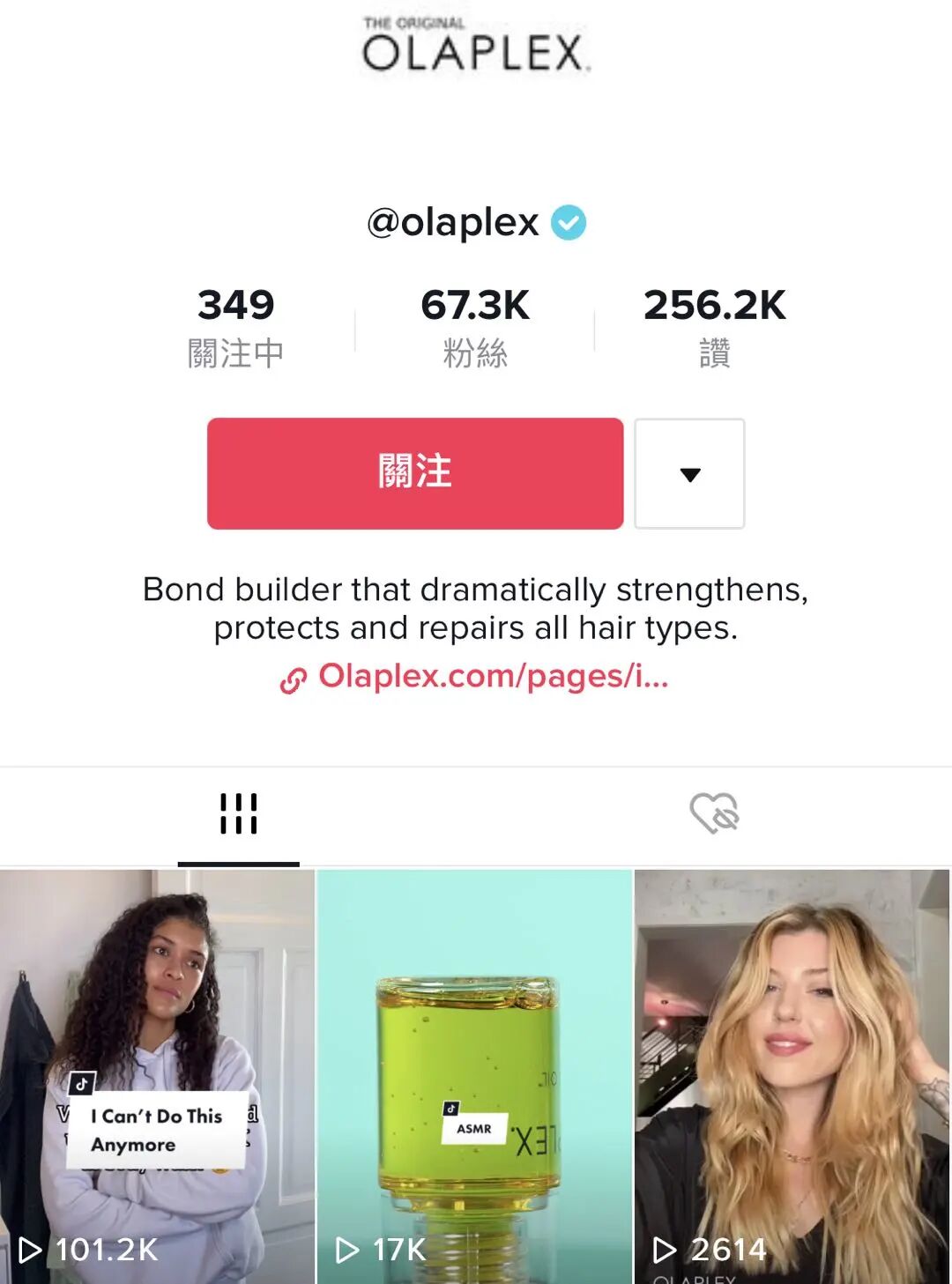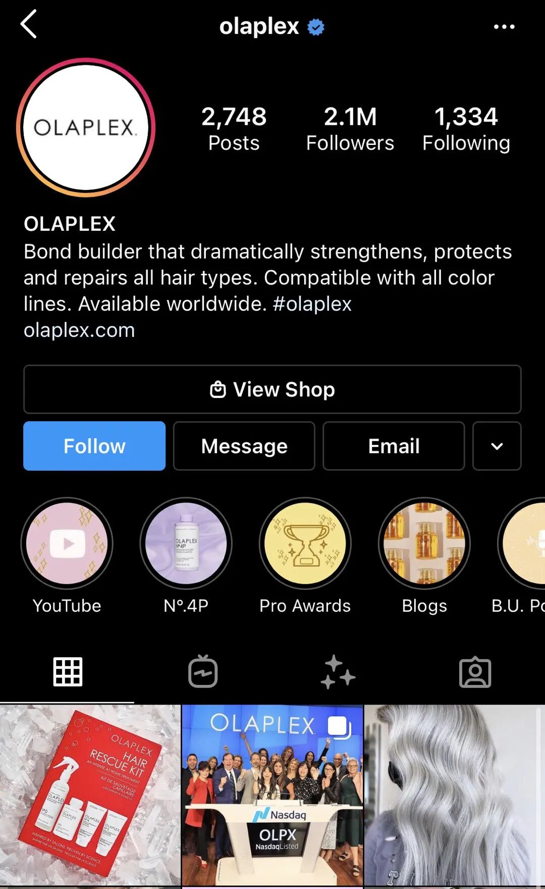 Olaplex的Instagram是它最重要的社交媒体平台,已经累积了210万粉丝,日均浏览量1.3万。