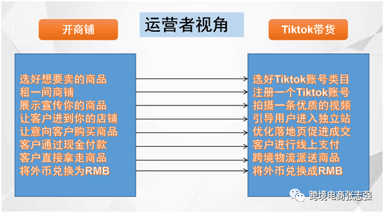 目前TikTok全球(不包国内抖音)月活用户突破10亿!随着好几个国家的Tiktokshop正在运营,美国的小店似乎也马上要开通了,接下来TikTok出海电商会迎来大爆发。近期很多做亚马逊和速卖通的等平台电商的小伙伴问我如何利用好Tiktok来进行短视频带货,逐渐成为一条主赛道。那通过这一年来我的运营经验来看Tiktok电商的逻辑跟开店铺是没区别的,其实很简单,小伙伴们先看下图: