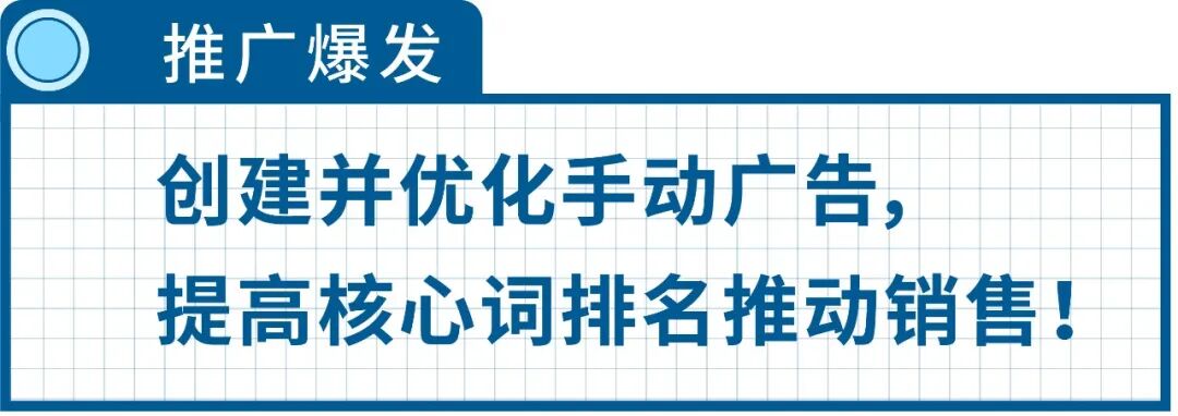 我们一般会在自动广告开始产生review时,适当的降低自动广告预算,并开启手动广告,在有review的情况下开启手动广告较能保证转化效果。此时,手动广告也从商品投放改为了关键词投放。