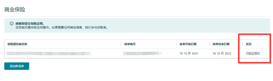 另外也可以通过后台的【设置】-【账户信息】-【商业保险】进行查询。