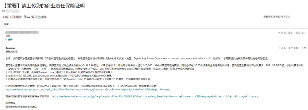 购买亚马逊商业责任保险貌似已经成了不可回避的一件事情,越来越多的卖家开始收到邮件。