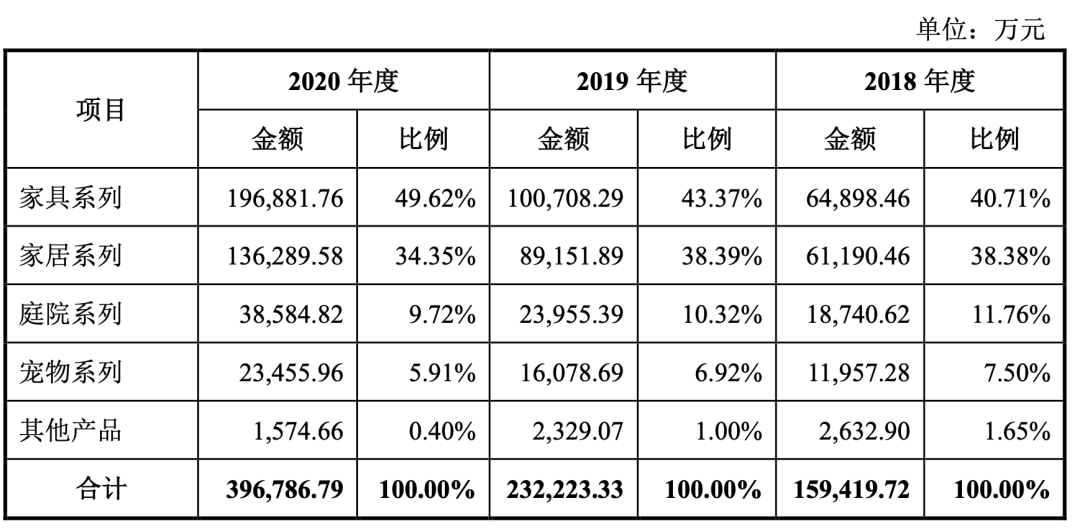 其中,“家具+家居”系列占据致欧科技收入超过80%。