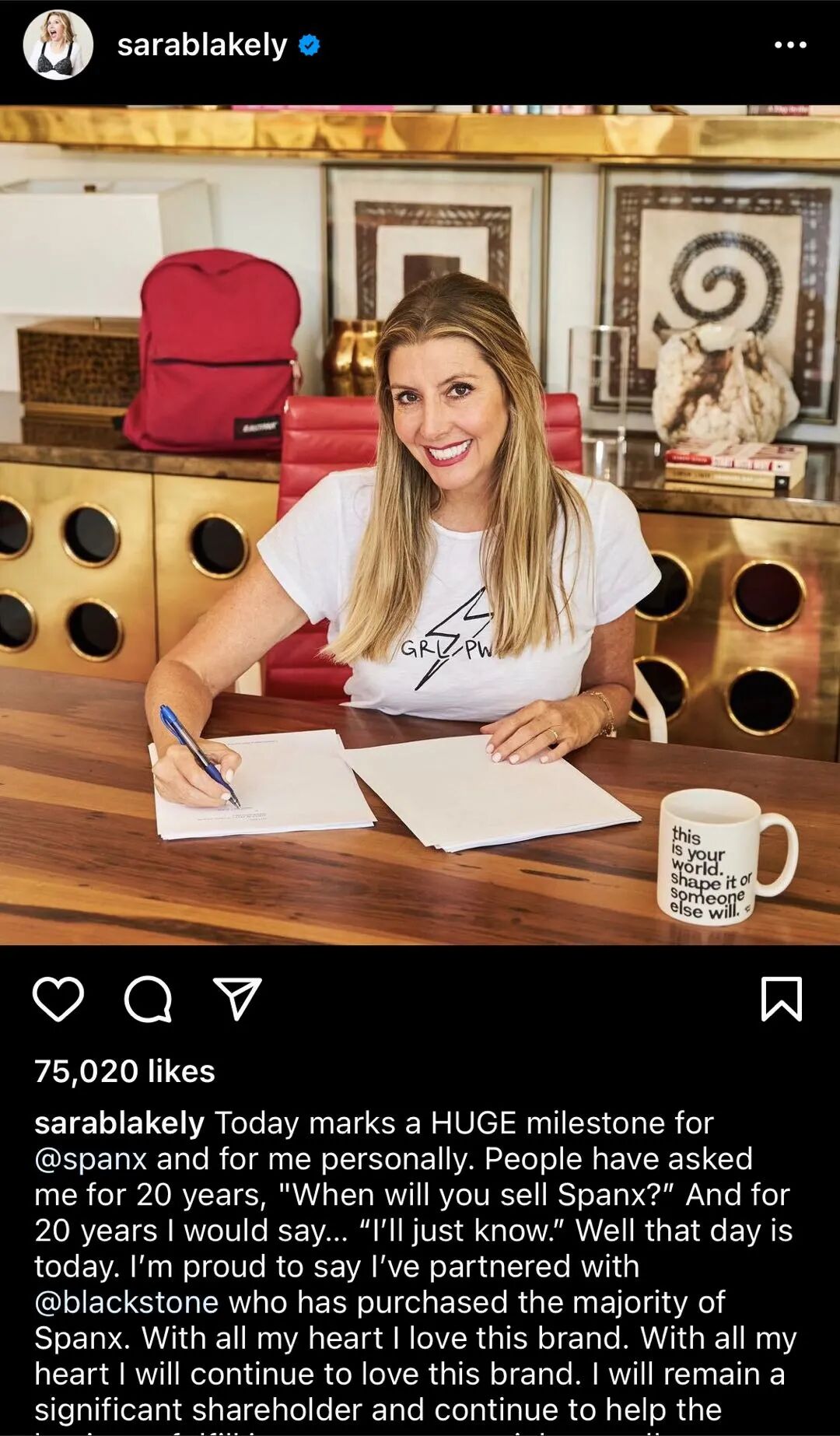 布莱克利除了是DTC塑身衣大牌Spanx的创始人,她还是NBA亚特兰大老鹰队的一名小股东,美国多档商业节目的嘉宾,以及慈善名人。人生经历,可谓非常丰富的。