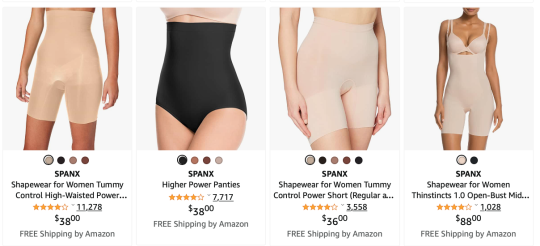 在亚马逊上,Spanx几乎是所有塑身衣品牌必定会遭遇的对手。它的几款热门单品,累计评论数都非常高。Spanx和Shapemint竞争非常激烈,相对来说Spanx的价位会更高一些。