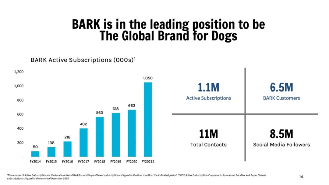 根据SEC文件披露,BarkBox在2020年12月活跃订阅量为110万,顾客总数650 万人次。根据最新数据,在最近一个季度末,已经拥有约180万订阅用户。
