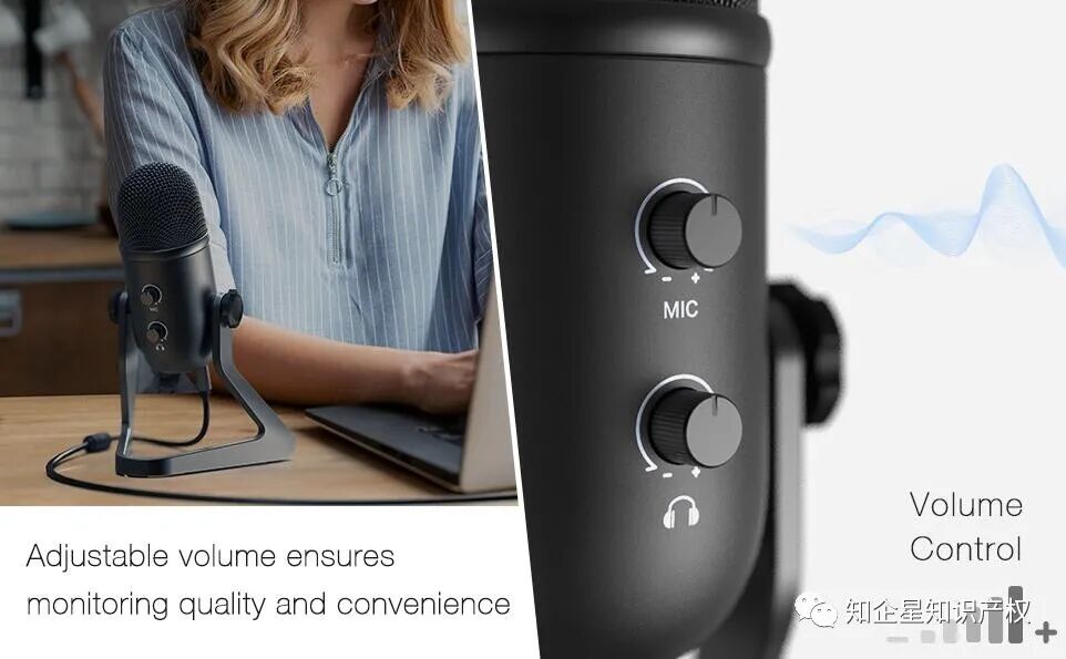 产品的核心设计点在于:1、底部的支架造型;2、圆润的麦克风及其三个功能按键。