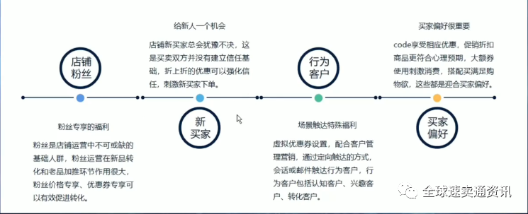 触达定位压迫:定向优惠劵的设置,配合店铺互动活动实现关注有礼和互动游戏获取优惠劵,定向优惠劵配合客户营销,会话和邮件触达优惠劵及商品
