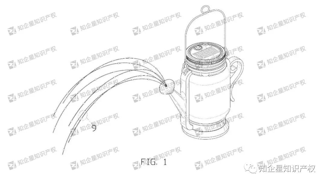 核心设计点在于:1、复审的梅森罐瓶身及水壶设计;2、六条灯带组成的水洒;3、瓶身上方的挂环。