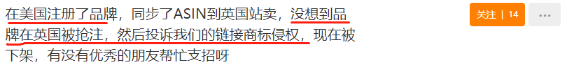 有卖家想将美国站的ASIN同步到英国站销售,结果却遭到商标侵权投诉。这才发现自己的品牌在英国被抢注了,发邮件跟对方沟通不回,提交美国商标证书申诉也没用,只能看着呕心沥血建立的listing被下架,大批库存积压。