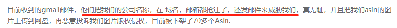 域名抢注然后恶意投诉的情况积特此前也跟大家分享过,这么快又有卖家中招,可见这小众的恶搞手段有“流行”趋势,平时有疏忽这方面的卖家要抓紧重视起来。