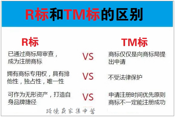 分享这位卖家的经验之前,我们有必要先来看一下R标和TM标的一些区别,很多卖家可能还不清楚TM商标是什么意思。