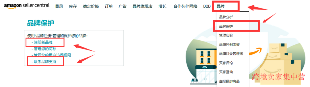 在我们的卖家后台可以直接进入,点击“品牌”下面的“品牌保护”即可。