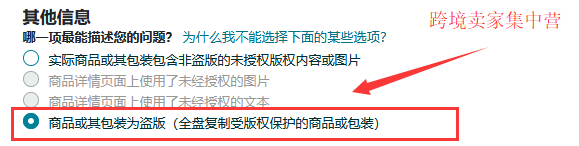 这里跟R标投诉跟卖略有不同,R标投诉选择的是“商标侵权”,TM标投诉选择“版权侵权”。