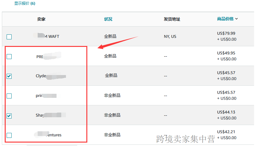 点击“显示报价”以后,在下面选择你想要投诉的跟卖店铺。