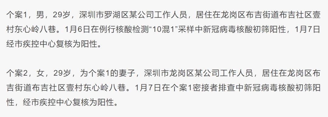 据深圳龙岗发布报道,1月7日,深圳市在对重点行业从业人员定期核酸检测时,发现了2例新冠病毒阳性感染者。