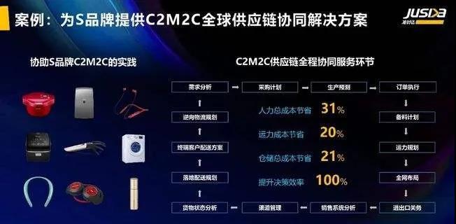 以日本某制造业头部客户为例,在准时达的C2M2C解决方案下,2020全年人力成本节省了30%,运力成本节省20%,仓储总成本节省约20%,决策效率提示接近一倍。