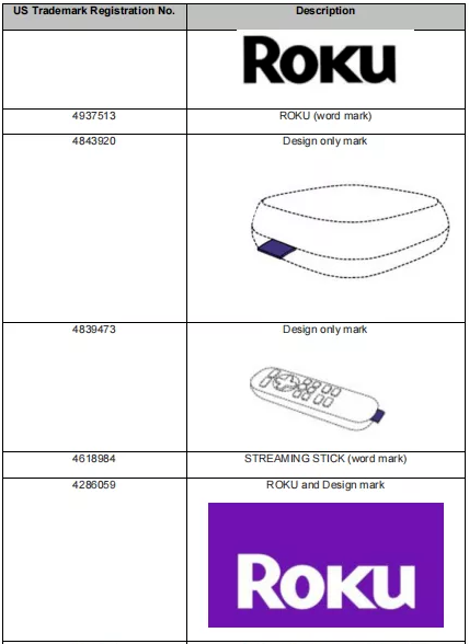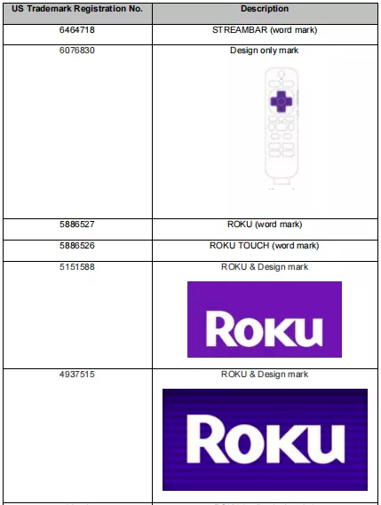涉及的商标非常多,除了Roku、streambar等文字商标,也要小心品牌方旗下的图形商标: