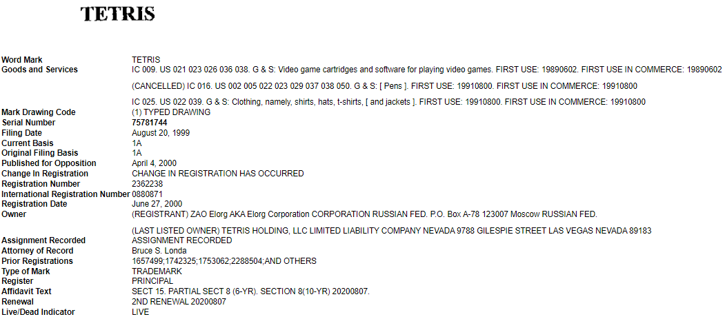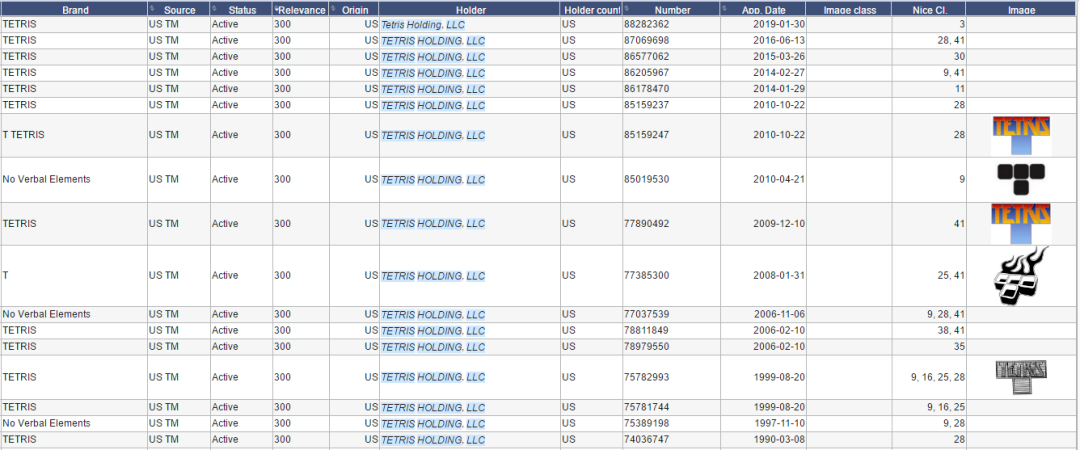 另外,Tetris Holding, LLC还拥有多个注册商标,文字、图形均有,卖家要一并规避:
