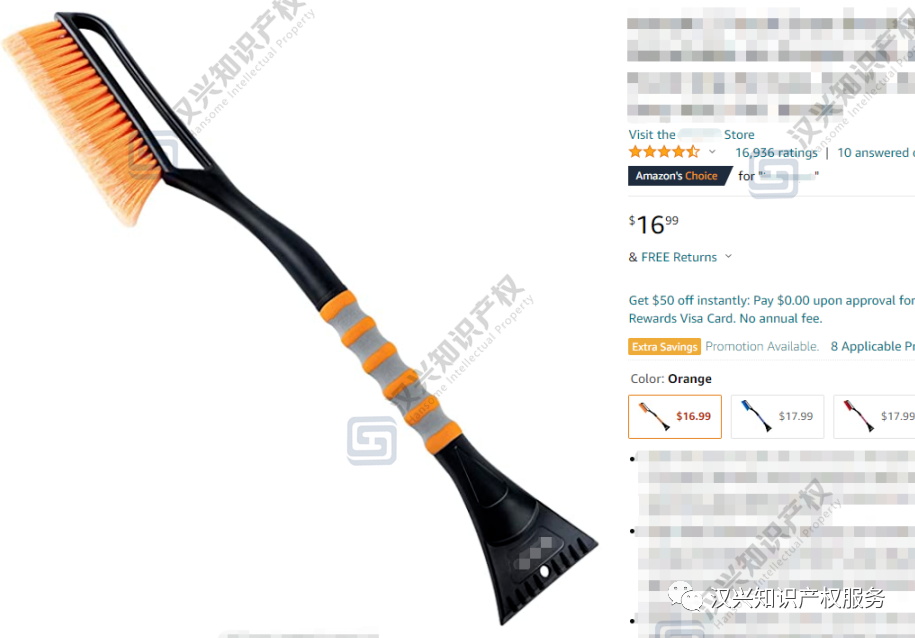 小编发现目前市场上有多家在售相关款式的除雪铲,其中有一些跟这款外观是高度近似的,都有一定的侵权风险!所以有在美国站销售相关产品的卖家,请自查下自己产品的近似程度,如果有侵权风险,那要有应对方案了。