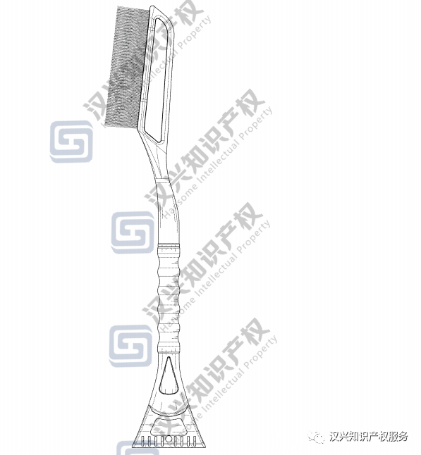 经美国专利背景检索,我们发现该产品在美国是有相关的外观专利的(已经授权并且有效)。下面展示这款汽车除雪铲美国外观专利的部分截图: