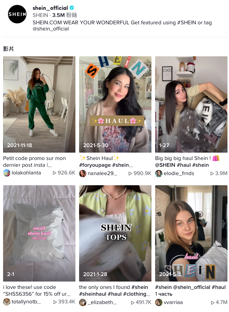 Shein最初是谷歌流量的高手,而在社交媒体时代,它更彻底开挂了,在Instagram、TikTok等主流社交媒体,Shein积累了千万级别的粉丝 。