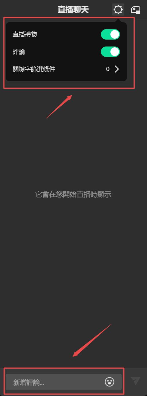 明显,这里可以看到网友们的评论,主播也可以对网友进行回复,支持文字和表情包。同时可以选择关掉直播礼物或者评论,设置设置关键字进行筛选。