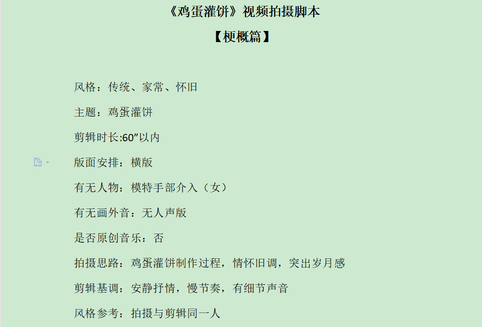 通常情况下,一个完整的短视频脚本由三大部分组成:脚本梗概、方案框架、分镜头写作