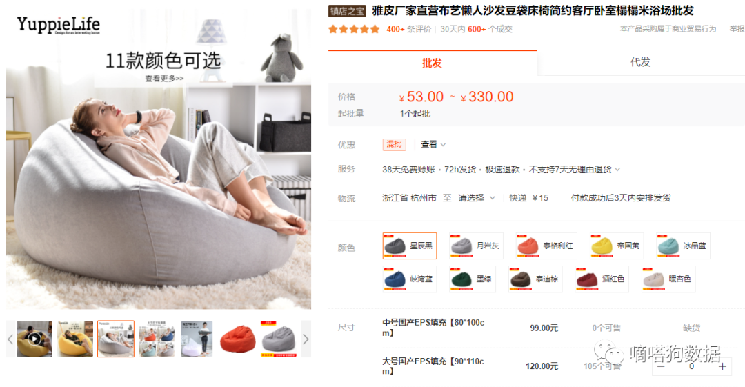 对于TikTok上的网友来说,价格实惠也是购买因素之一。在1688上这款懒人沙发在外形上与“shark tank豆袋椅”相同。