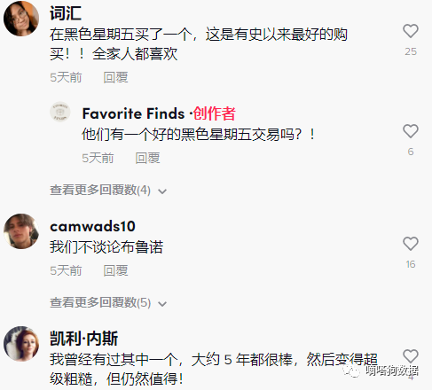 在视频的评论区中,有非常多的网友在购买后,夸赞了这款产品,在使用过5年后依然觉得很值得购买。很多网友拥有这款同款,表示自己的非常喜欢。