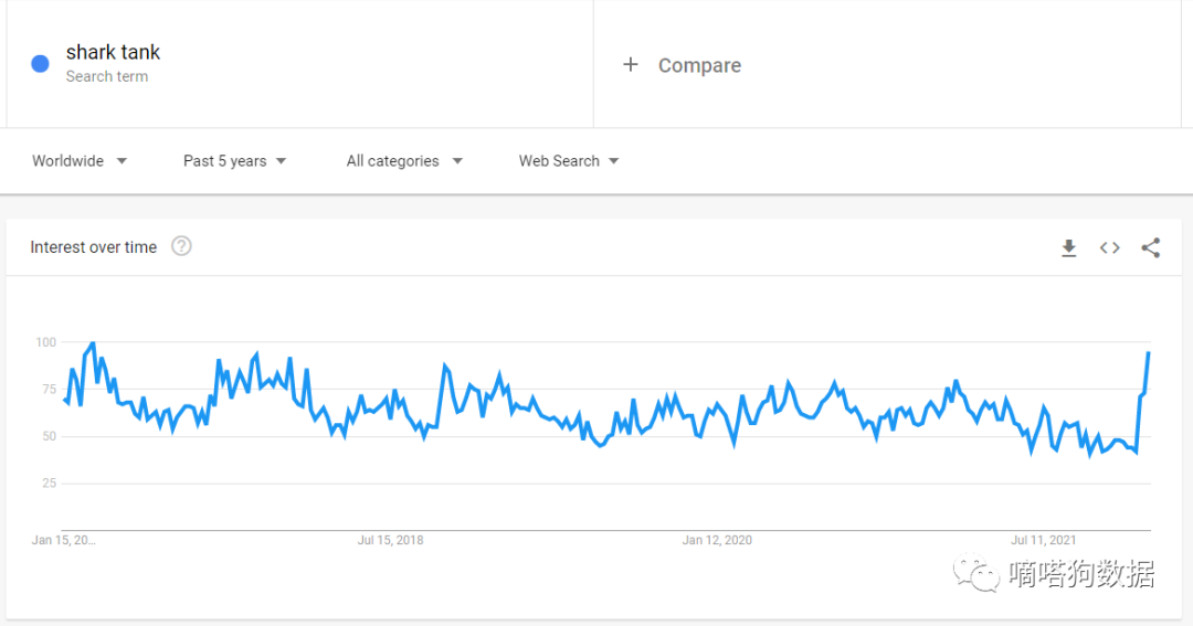 查询Google Trends可以发现,近期产品相应关键词“shark tank”处于上升趋势,说明这款产品在近段时间受到大量关注。