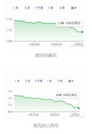 欧元在短时间内汇率大跌,就是因为俄乌战事的原因,在几个比较关键时间节点上,欧元都是伴随着俄乌战事的进一步恶化而狂跌。