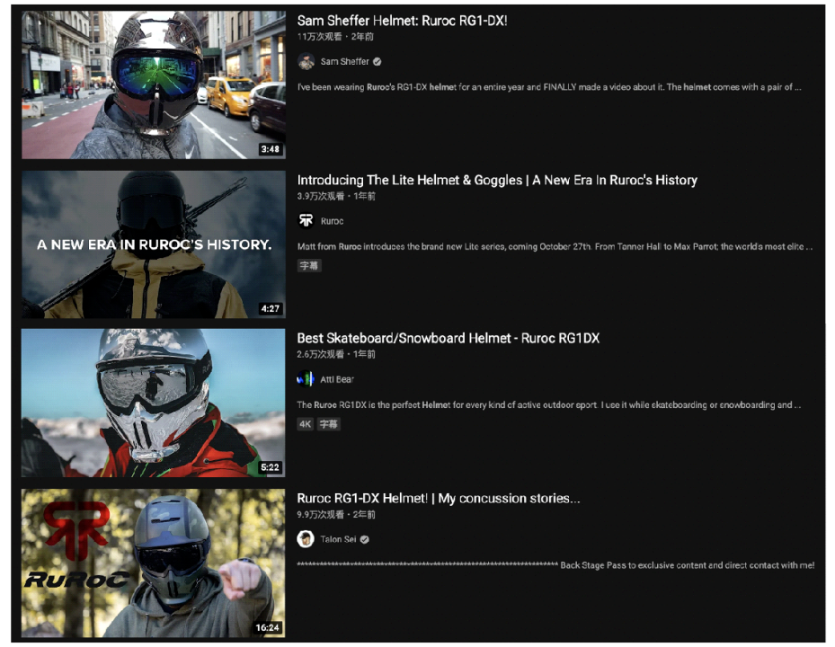 当然,除了守住商业版图之外,继续抢占新阵地也是商业活动的重要组成部分。Ruroc 在 KOL 营销中,除了针对原有的滑雪人群,还瞄准了另一个新目标——滑板人群。这两个人群有着高度重合的特性:喜欢“有型”和“个性”,并且大都是年轻人。因此,除了邀请 KOL 评测和开箱 Ruroc 的头盔之外,还邀请了许多滑板领域的 KOL 戴着 Ruroc 的雪盔制作滑板相关的视频内容,获取滑板客群。