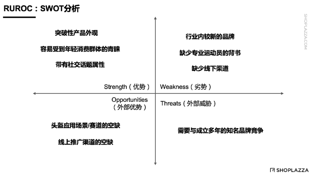 机会(Opportunities):头盔应用场景/赛道空缺;线上推广渠道的空缺。