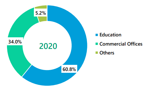 由于商业办公领域的扩张以及教育领域的投资激增,沙特阿拉伯和阿联酋占据了市场需求的主要份额。从应用来看,教育板块占市场需求的主要份额,其次是商业办公板块。