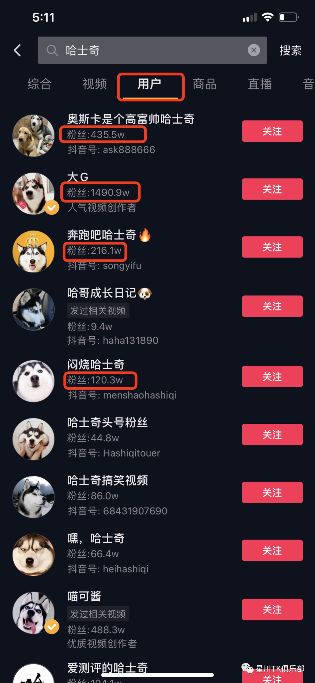 通过上述2种方法,一顿操作下来,我们已经至少手握几十个关于“哈士奇”的短视频up主素材源头。